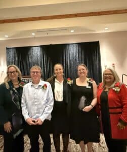 Kellen Alger, recipient of our 2026 Award for Teaching Excellence, seen here with NEA Deputy Executive Director Karen White, MFPE President Amanda Curtis, ESP of the Year Britt Postma, and NEA Executive Director Kim Anderson